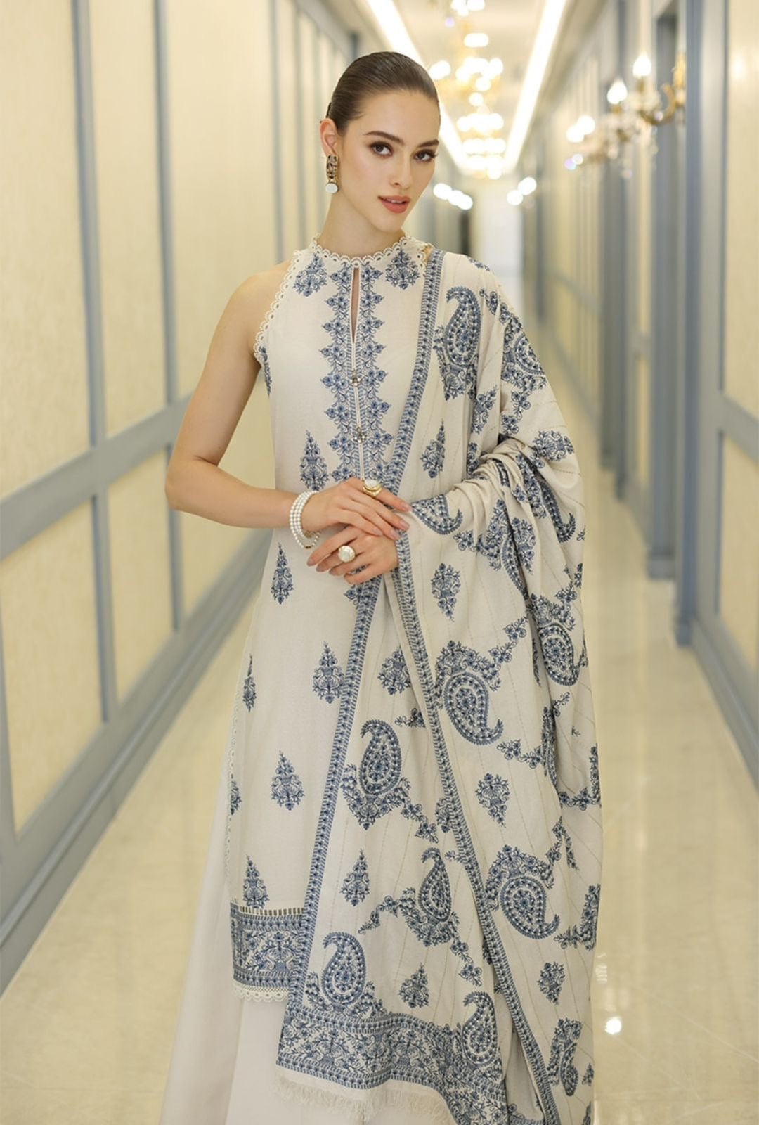 Elevate your winter wardrobe with this Ladies 3-Piece Unstitched Dhanak Dress. Featuring rich embroidery on the front, sleeves, and daman, paired with an embroidered shawl and trouser, this outfit combines elegance, comfort, and tradition. Perfect for casual wear, gatherings, or festive occasions.