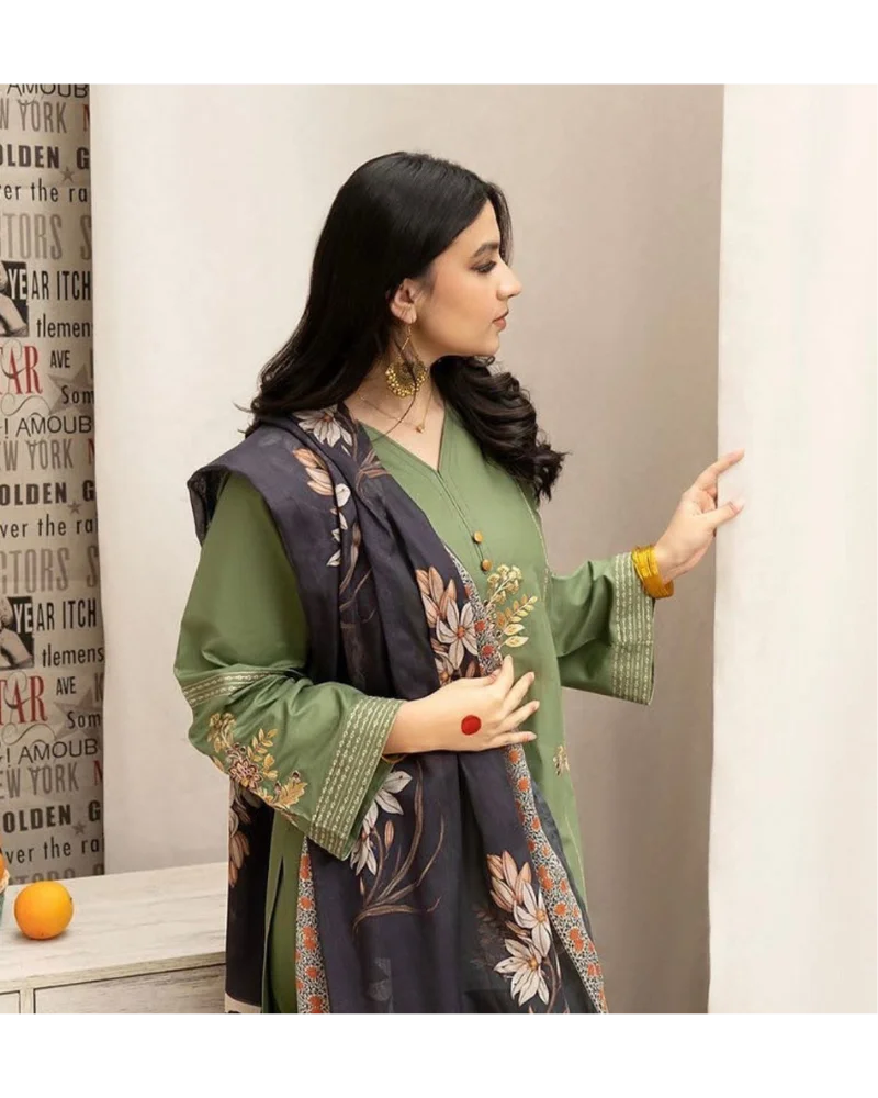 Stay effortlessly stylish with this Premium Dhanak 3-piece suit. The embroidered shirt and sleeves add a touch of elegance, while the soft Dhanak trouser with embroidered patch ensures comfort. Paired with a printed pashmina wool shawl, it’s the perfect blend of warmth and grace.